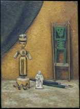 I was not trying to make art. I was trying to learn how to handle oil paint, and how to make it do that marvelous and strange thing when paint appears to have become the object it represents. I tried to get the drawing and tone and colour to a particular point of harmony at which you can look at a painting rather in the way you can look at the famous vase that is also a pair of profiles: You can see pigment with brushmarks and scratches on a flat surface, or you can see depth and space and objects. This does not require painstaking trompe l'oeil, but it does require close observation and careful drawing. You also need confidence in the application of the paint. Tentative work always looks awful.